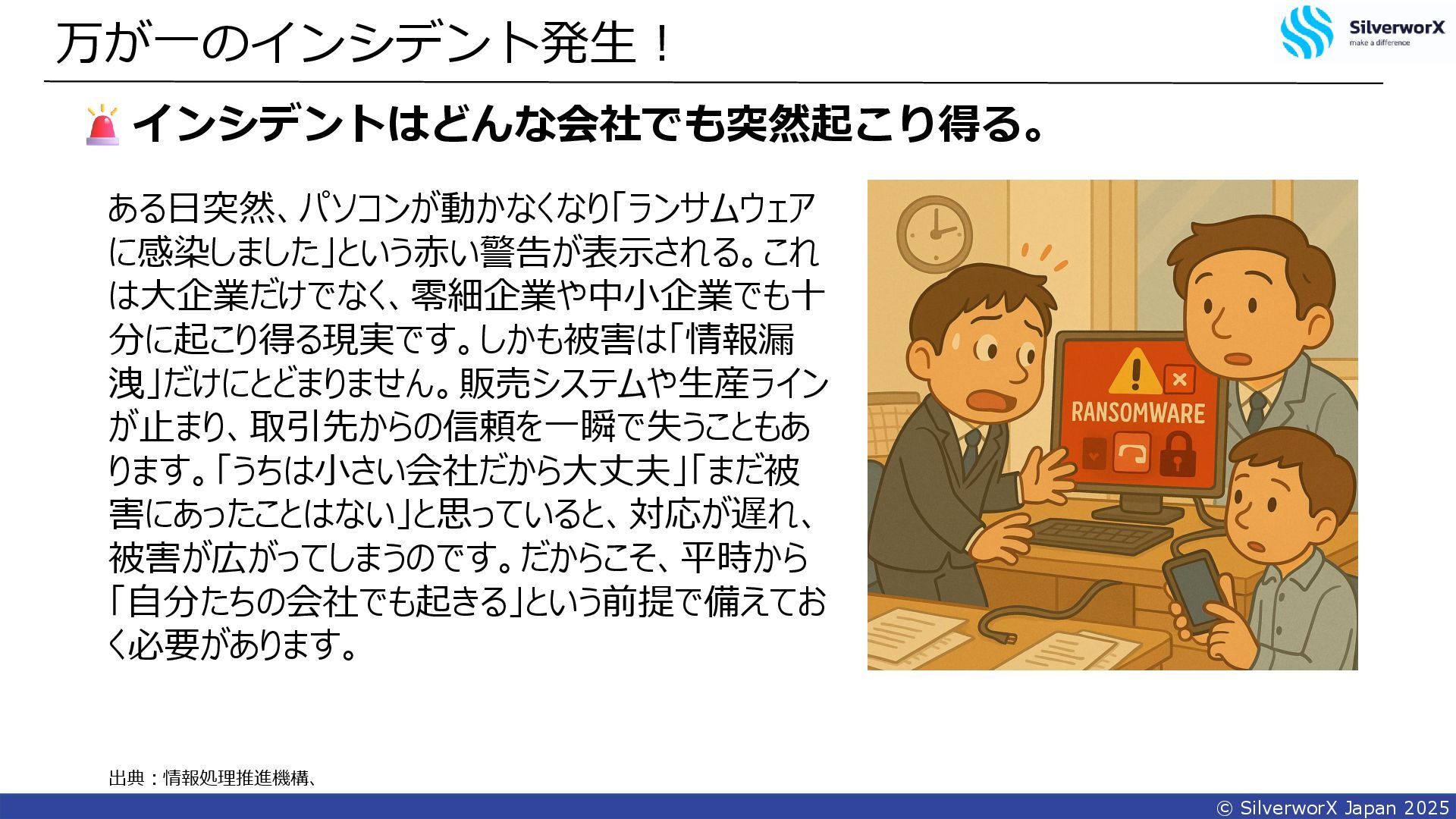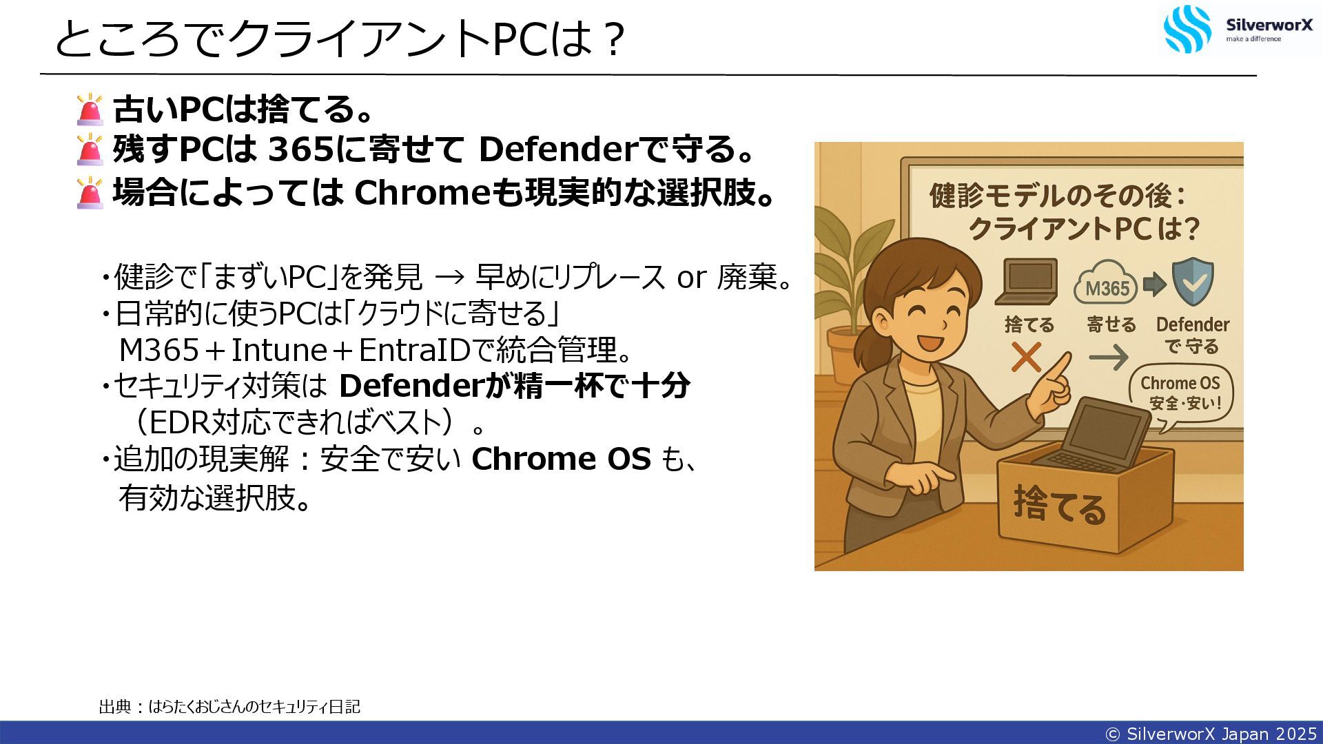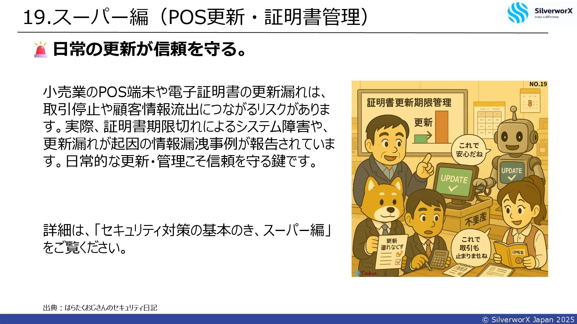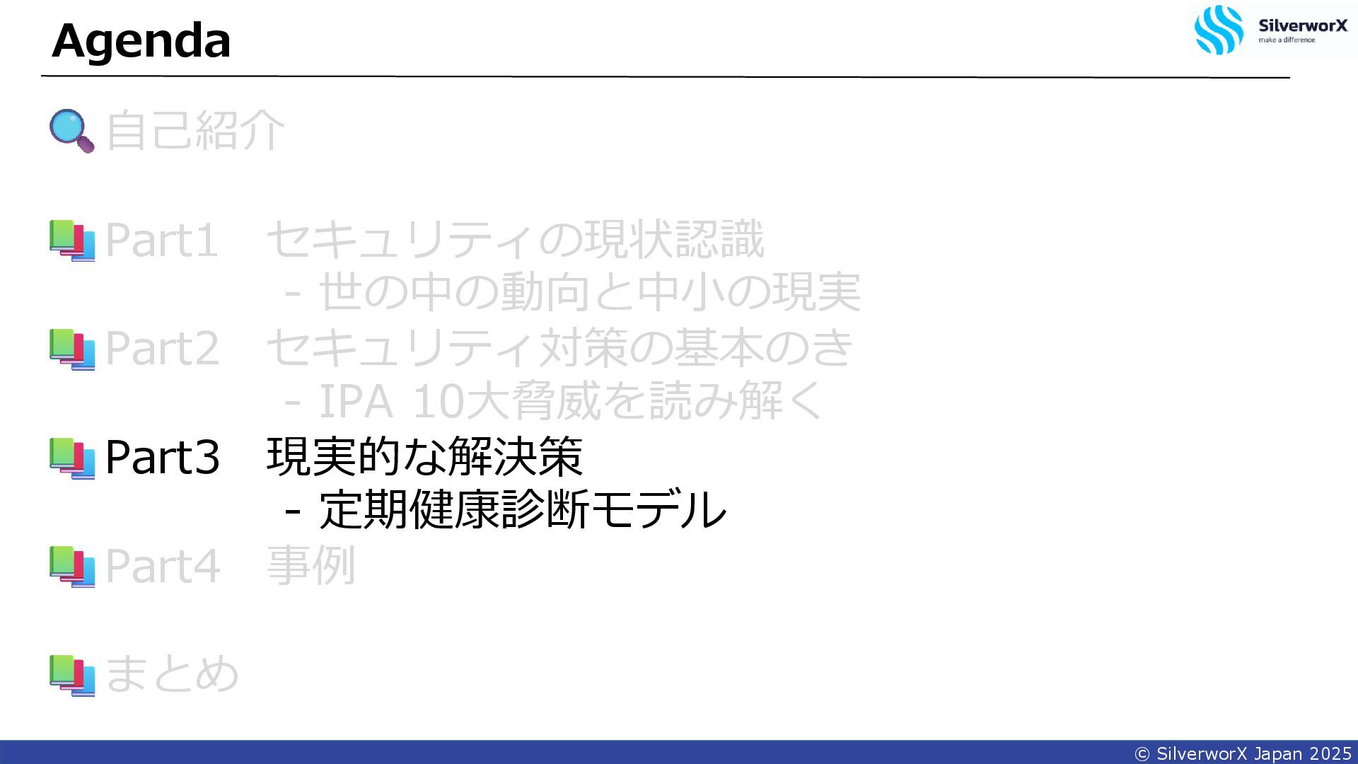 #Security #CyberSecurity #HealthCheckModel #ShiftAndCut #SilverworX #DX #クラウド移行 #中小企業セキュリティ #セキュリティ対策の基本のき #定期健診モデル #未来への投資 #はらたくおじさん #原子拓