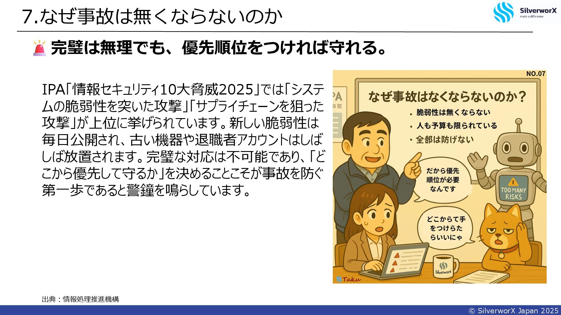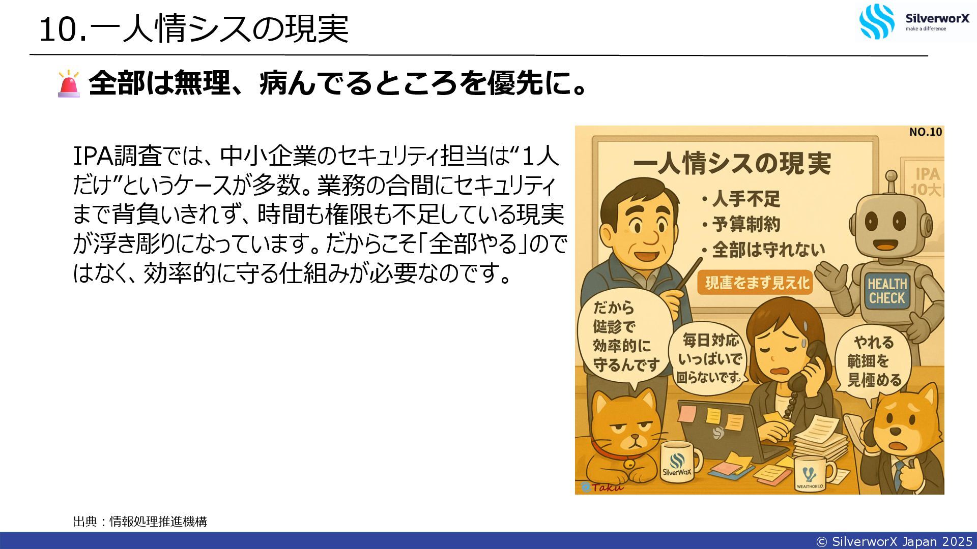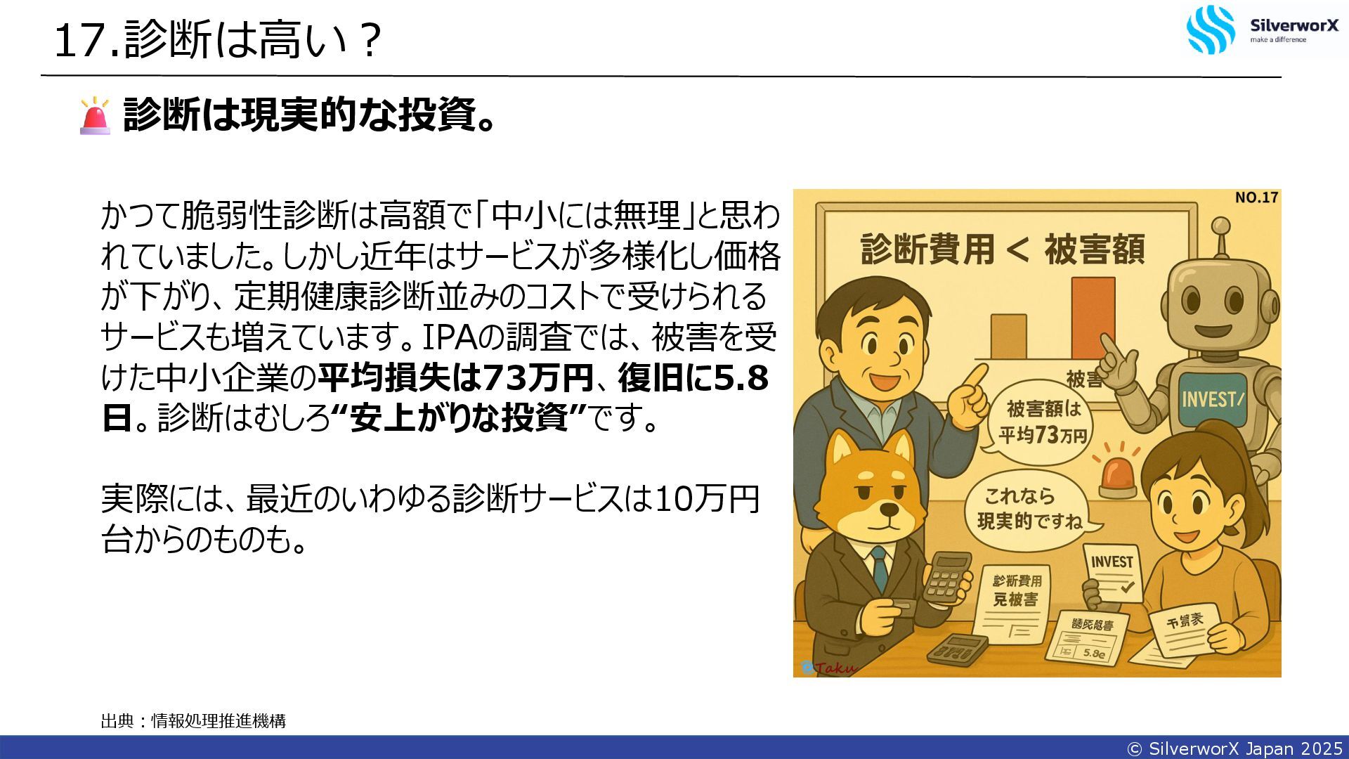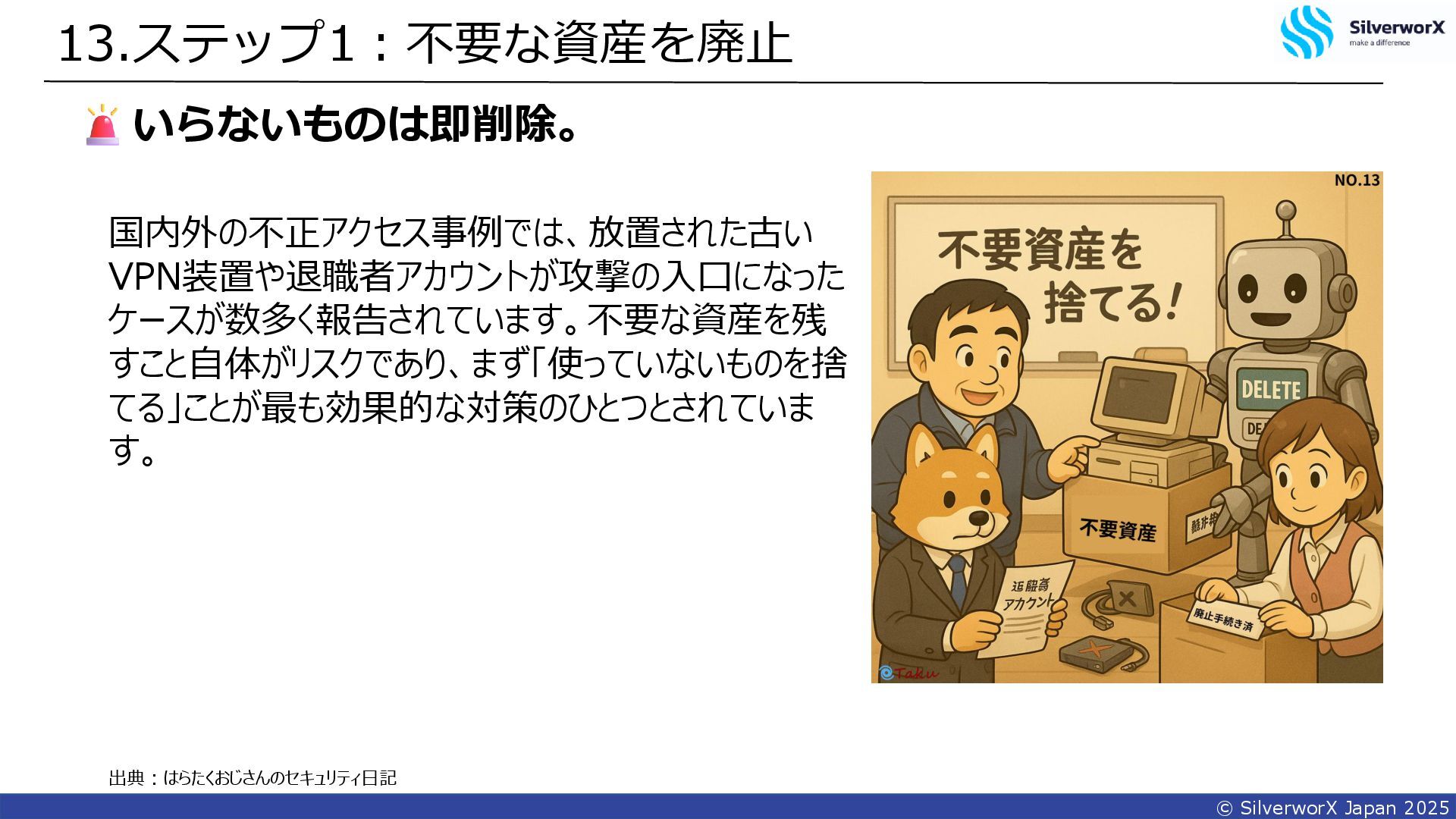 #Security #CyberSecurity #HealthCheckModel #ShiftAndCut #SilverworX #DX #クラウド移行 #中小企業セキュリティ #セキュリティ対策の基本のき #定期健診モデル #未来への投資 #はらたくおじさん #原子拓