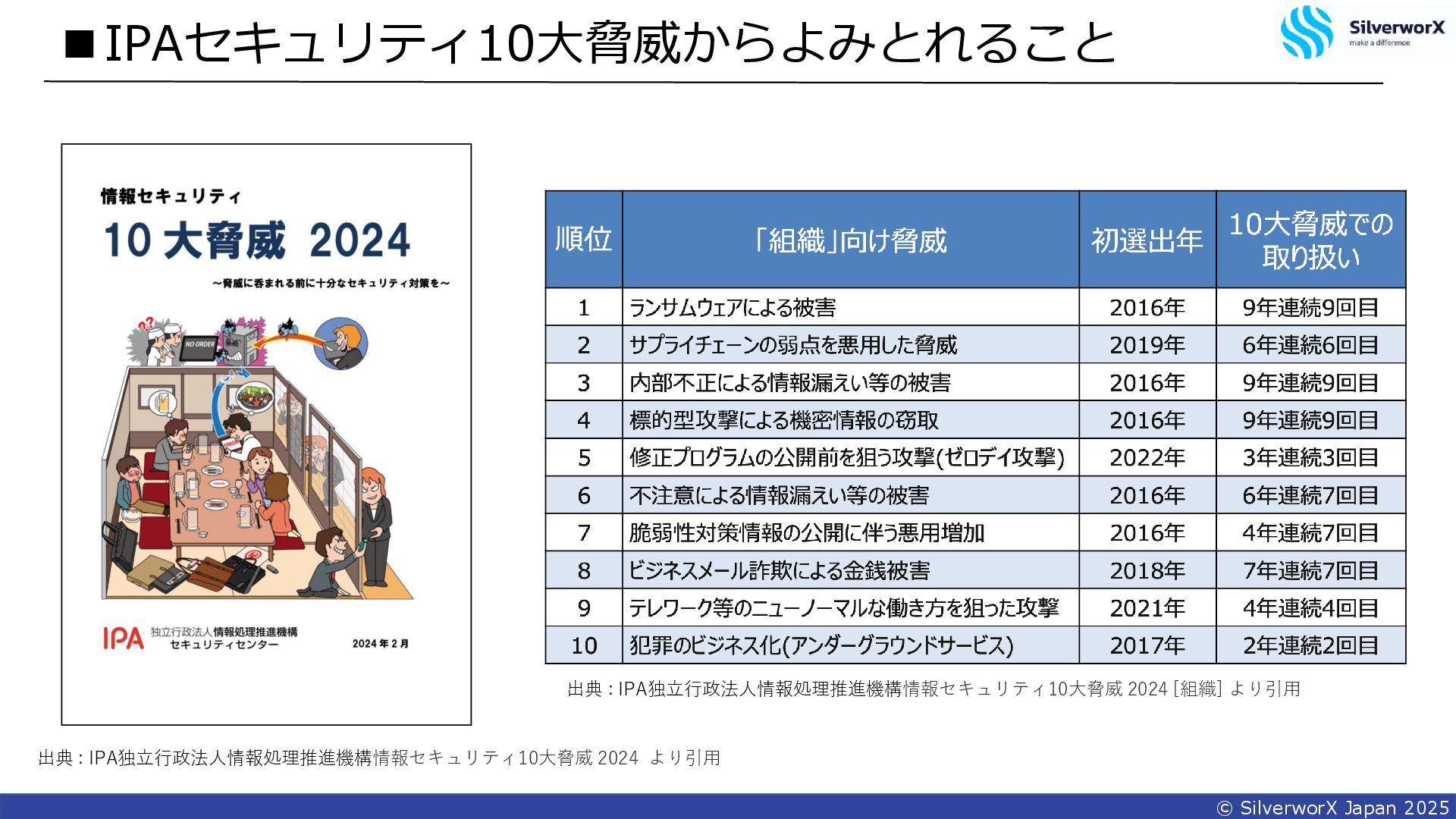 また、サプライチェーンでの抜本的なセキュリティ対策が進まない中、経済安全保障やガイドラインの引き締めなど、現実的なセキュリティ対策が急務になっております。今回は、サイバーなお話はおいておいて、情報セキュリティマネジメントの基本に立ち返えることが重要で、そこにはやれることがまだあるとお伝えするものです。みなさまの日々の取り組みのヒントになればと思います。