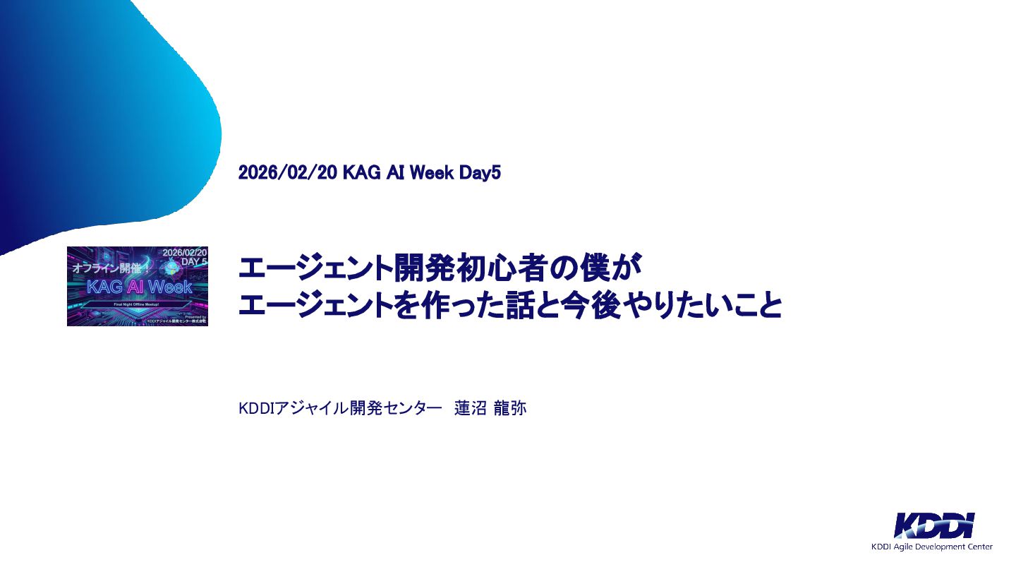 社外秘X エージェント開発初心者の僕が エージェントを作った話と今後やりたいこと 2026/02/20 KAG AI Week Day5