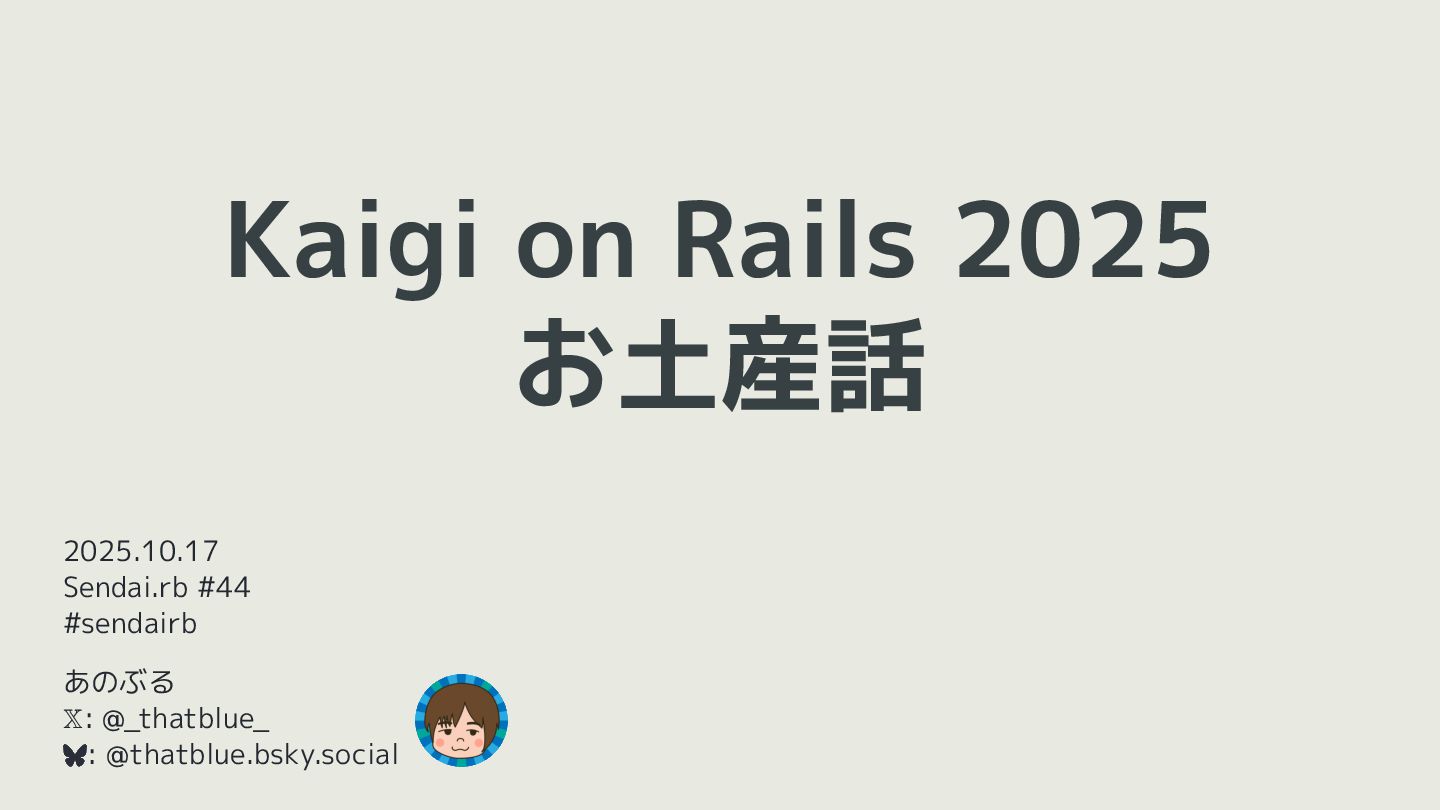 Kaigi on Rails 2025 お土産話 2025.10.17 Sendai.rb #44 #sendairb あのぶる
