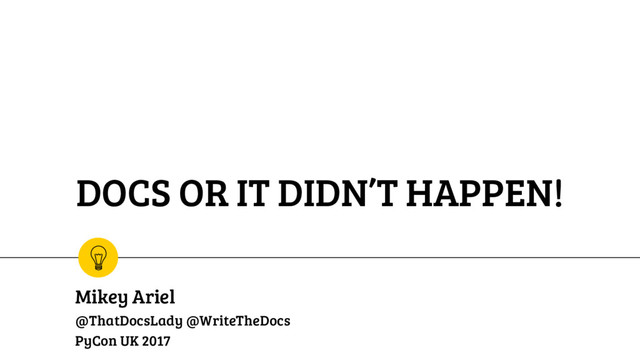 http://2017.pyconuk.org/sessions/talks/docs-or-it-didn-t-happen/