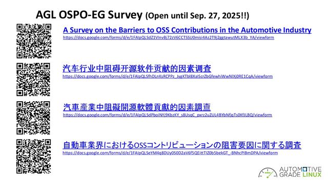 In the automotive industry, OSS contributions are currently less common compared to other sectors. Through this survey, we hope to identify the specific issues and challenges you face, clarify the factors that hinder OSS contributions, and ultimately promote OSS engagement not only within the automotive industry but across society as a whole.