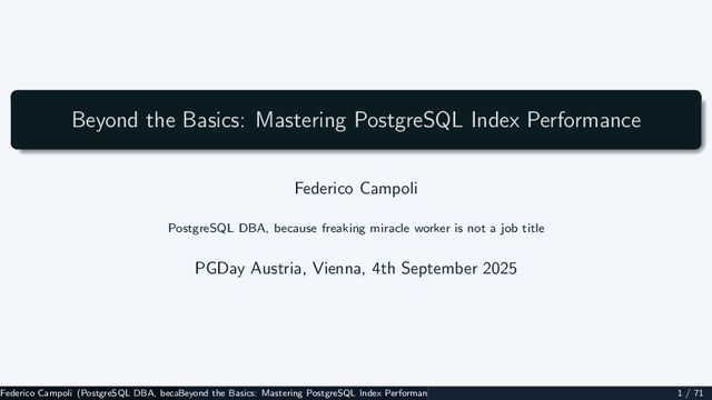 This talk delves into the nuances of PostgreSQL index performance, providing practical insights and actionable strategies for optimizing your database.