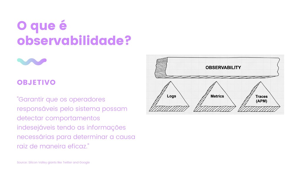 O que é observabilidade? OBJETIVO "Garantir que os operadores responsáveis