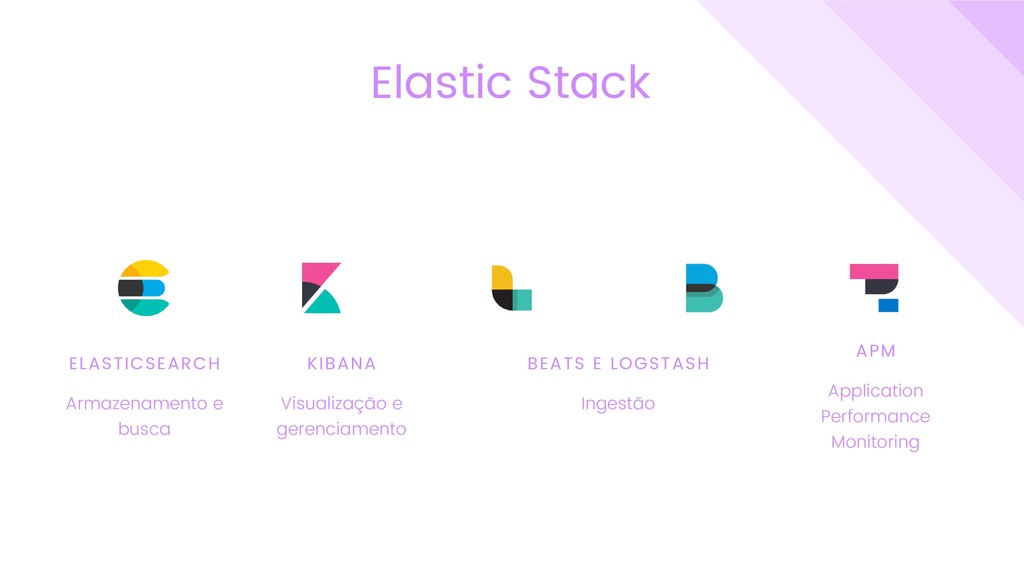 BEATS E LOGSTASH Ingestão KIBANA Visualização e gerenciamento ELASTICSEARCH Armazenamento