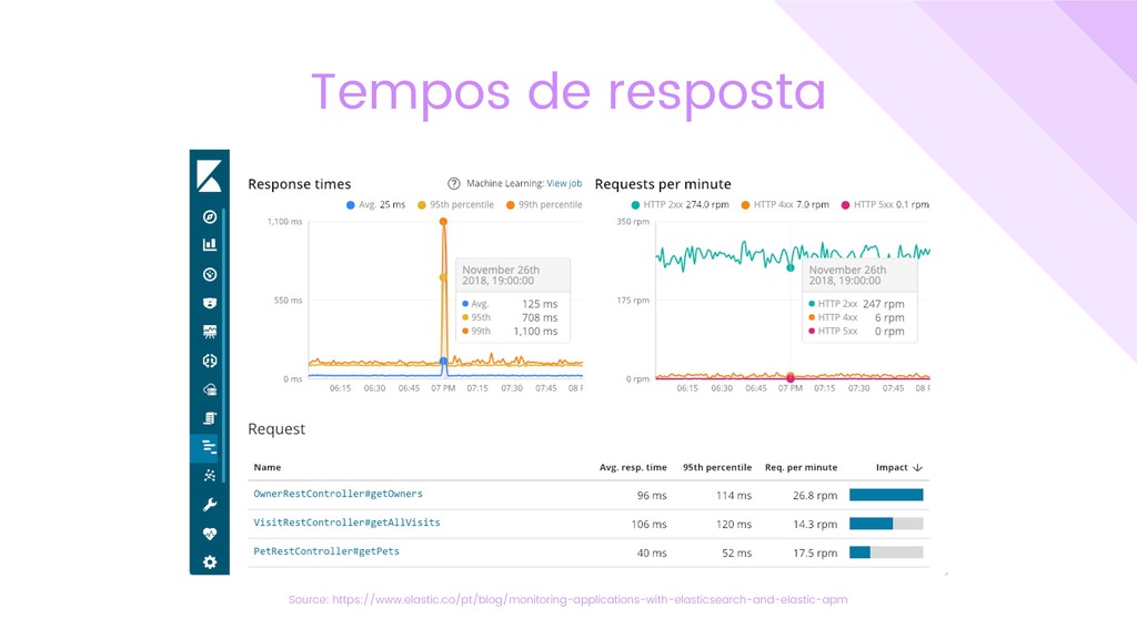 Tempos de resposta Source: https://www.elastic.co/pt/blog/monitoring-applications-with-elasticsearch-and-elastic-apm