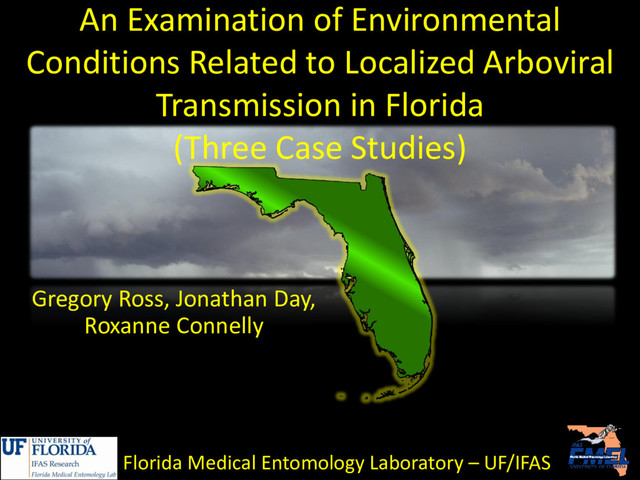 Presented at the Florida Mosquito Control Association Regional Short Course: Public Health Pest Control Training: Mosquito-borne Disease, GIS, and reports on selected mosquito species in Florida