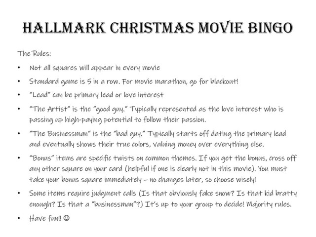 Years ago, my family started watching Hallmark Christmas movies together, mostly to make fun of them. We started noticing the patterns in plot and all of the stereotypical Christmas movie tropes. At some point, we made a competition out of it with handmade Bingo cards, and it has now become a family tradition.