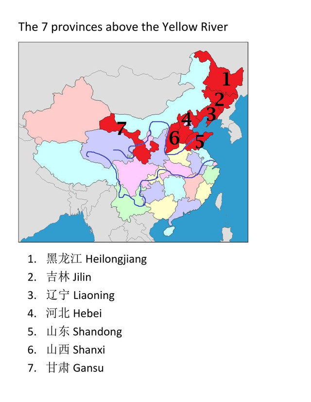 The 7 provinces above the Yellow River 1. 黑龙江 Heilongjiang