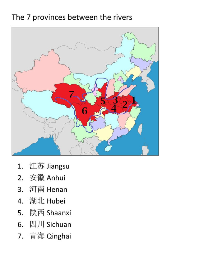 The 7 provinces between the rivers 1. 江苏 Jiangsu 2.