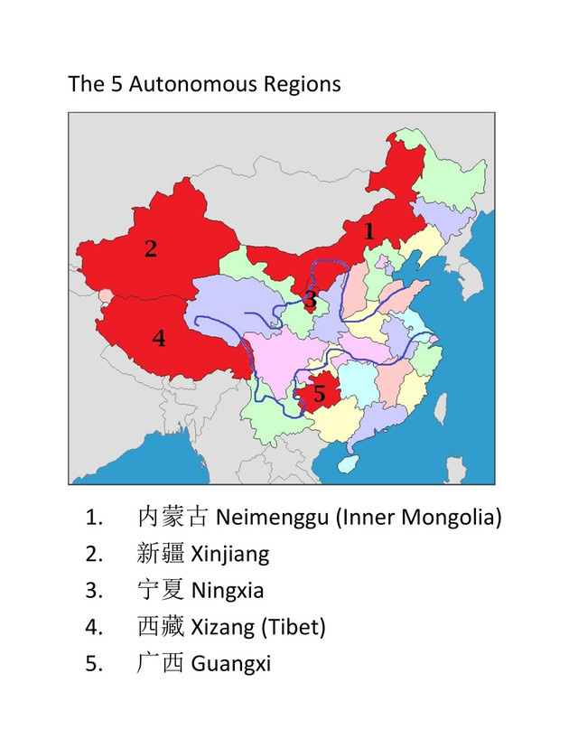 The 5 Autonomous Regions 1. 内蒙古 Neimenggu (Inner Mongolia) 2.