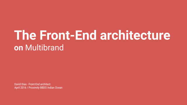 The Front-End architecture on Multibrand David Dias - Front-End architect