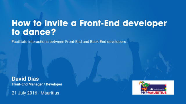 I tried to give some overview about the Front-End world and how Back-End and Front-End can understand each other and work more "hand by hand". We are moving to Full Stack developers that use daily JavaScript for Front and Back-End, it's then important for a Front-End to understand better Back, and for a Back-End to understand better the Front-End today.