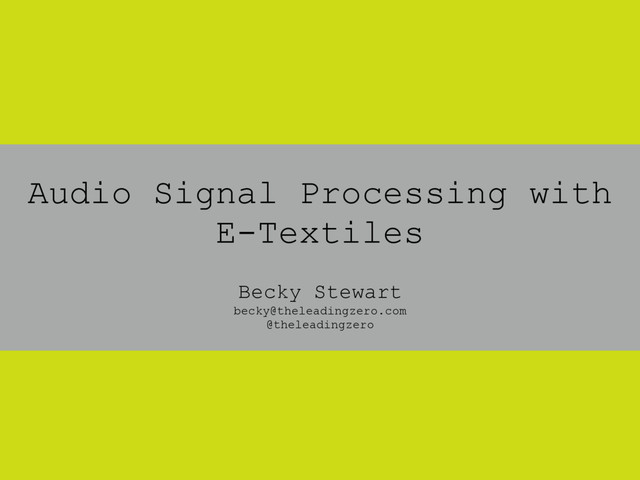 ! Audio Signal Processing with E-Textiles ! Becky Stewart