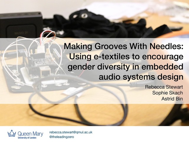 Historically, women have been excluded from engineering and computer science disciplines, and interactive audio is no exception. Relatively few women are involved with the designing and building of embedded audio systems with traditional tools such as microprocessors, but when embedded audio systems are built using e-textiles, much larger proportions of women become engaged with technology. In this paper we review theories for this gender disparity and the barriers women face in working with audio technology, and then present a com- parison of survey data between an e-textile audio workshop and an audio platform user group. Extrapolating from the case study and the surveyed literature, we propose that flexibility in learning, communal dissemination of knowledge, and gender- ing of tools are prominent reasons why women engage with technology via e-textiles.