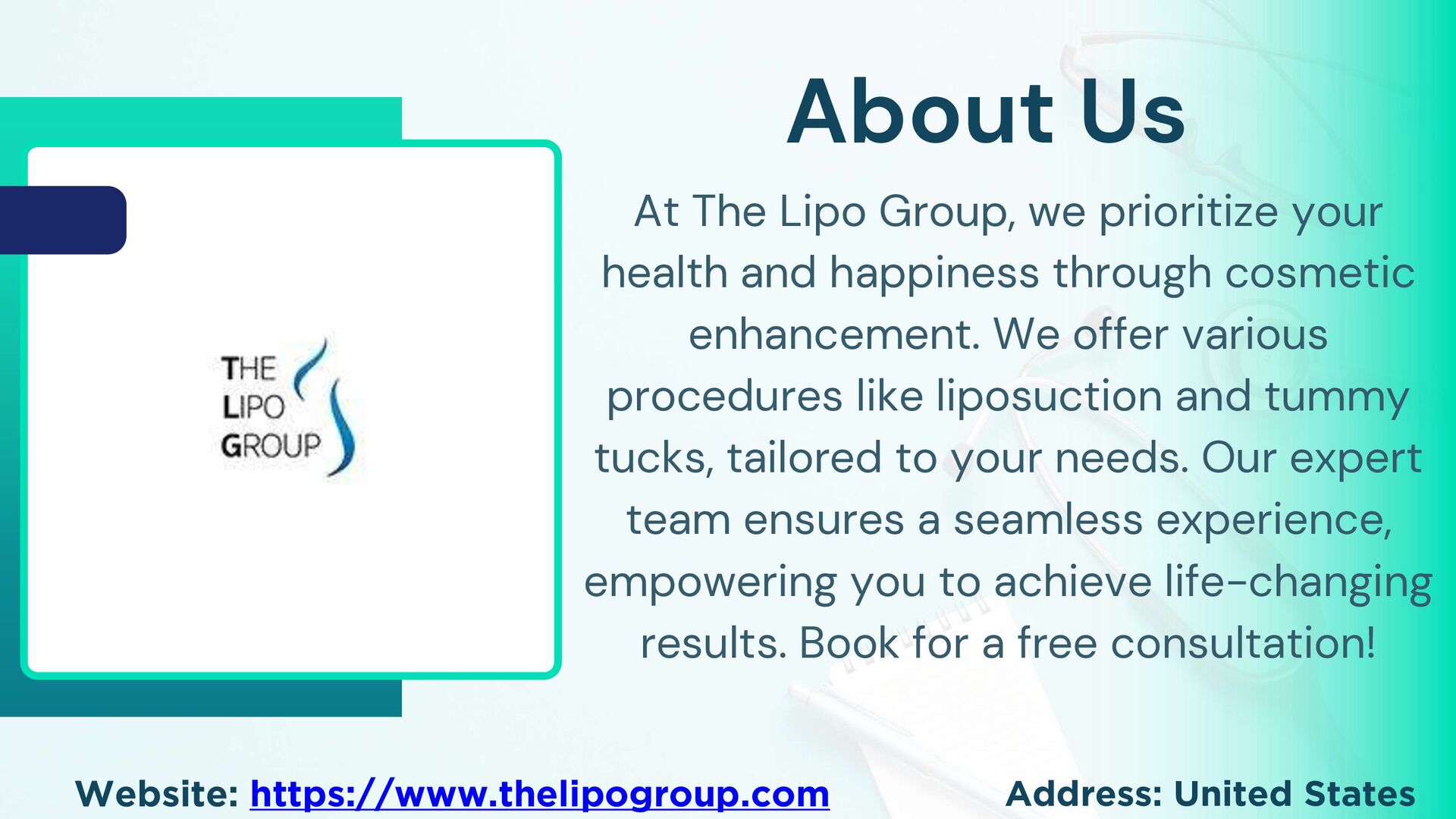 and happiness through cosmetic enhancement. We offer various procedures like liposuction and tummy tucks, tailored to your needs. Our expert team ensures a seamless experience, empowering you to achieve life-changing results. Book for a free consultation! Website: https://www.thelipogroup.com Address: United States