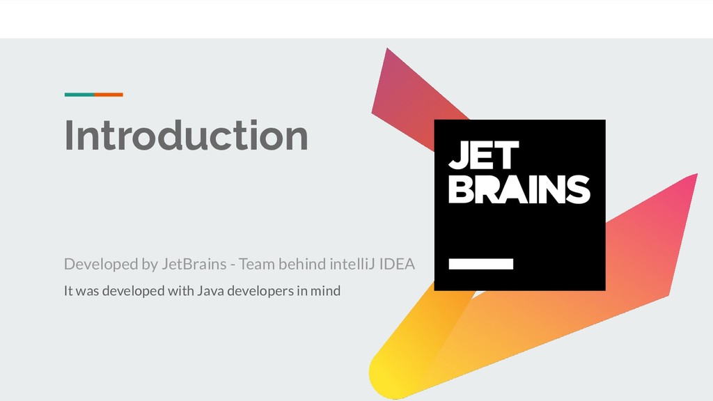 Introduction Developed by JetBrains - Team behind intelliJ IDEA It