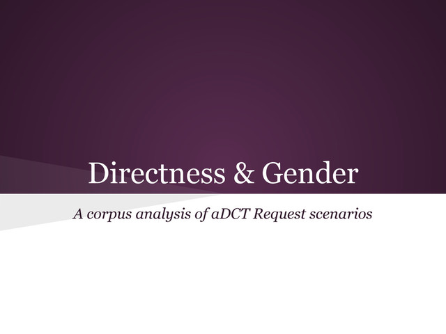 non- conventionally) strategies • In -SD situations, both groups favor CI, with equal probability of Non-Conventional Indirect • Female speakers have a higher probability (+4%) of using Non-Conventionally Indirect strategies, especially in situations that exhibit +SD