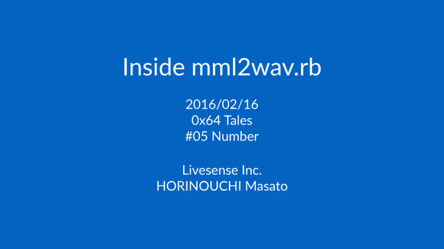 Inside mml2wav.rb 2016/02/16 0x64 Tales #05 Number Livesense Inc. HORINOUCHI