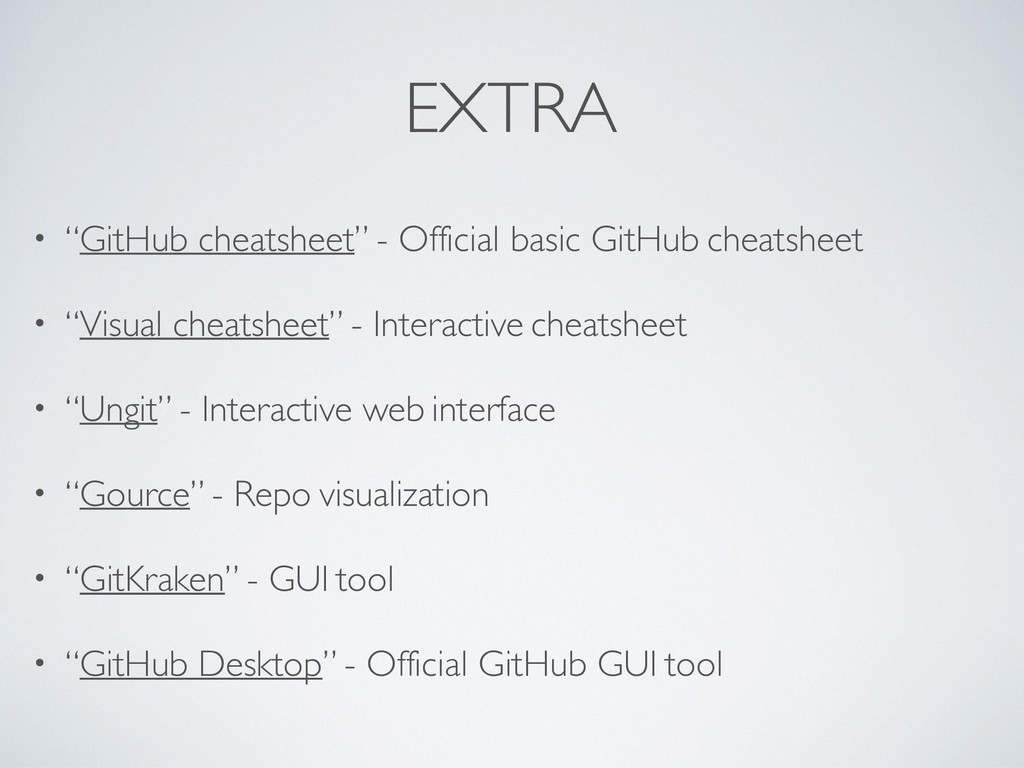 Tim Berglund “Advanced GIT for Developers” - Lorna Jane Mitchell “Get Started with Git” - David Baumgold “Advanced Git” - David Baumgold “A journey into” GIT internals with Python - Andrey Syschikov Books Pro Git “Git Best Practices Guide” - Eric Pidoux “Mastering Git” - Jakub Narębski “Learn enough Git to be dangerous” - Michael Hartl