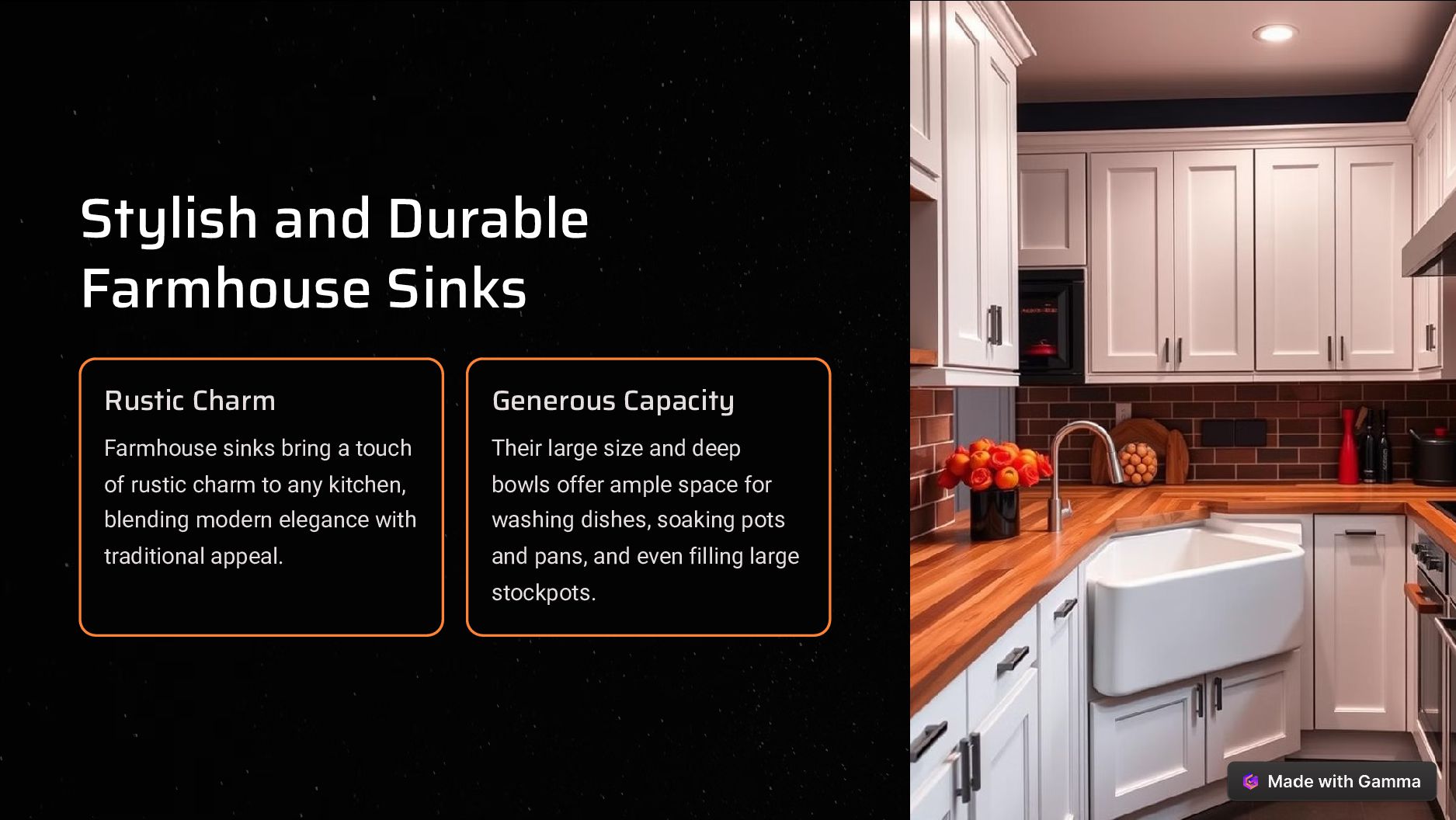 a touch of rustic charm to any kitchen, blending modern elegance with traditional appeal. Generous Capacity Their large size and deep bowls offer ample space for washing dishes, soaking pots and pans, and even filling large stockpots.