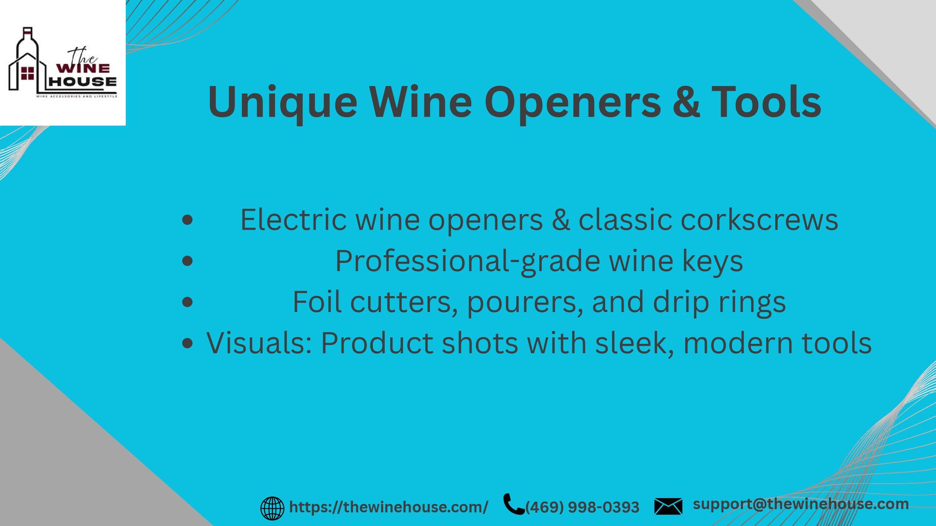 3. [email protected] (469) 998-0393 https://thewinehouse.com/ Unique Wine Openers & Tools Electric