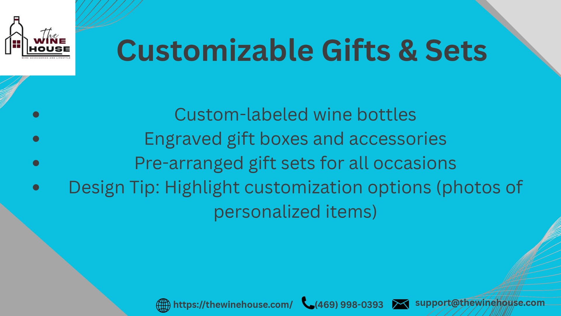 4. [email protected] (469) 998-0393 https://thewinehouse.com/ Customizable Gifts & Sets Custom-labeled wine