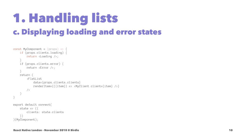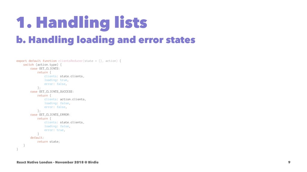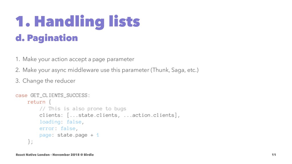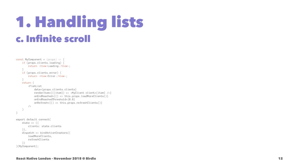 Loading lists from an API, pagination, infinite scroll, handling loading and error states, checking for non-null values, etc.