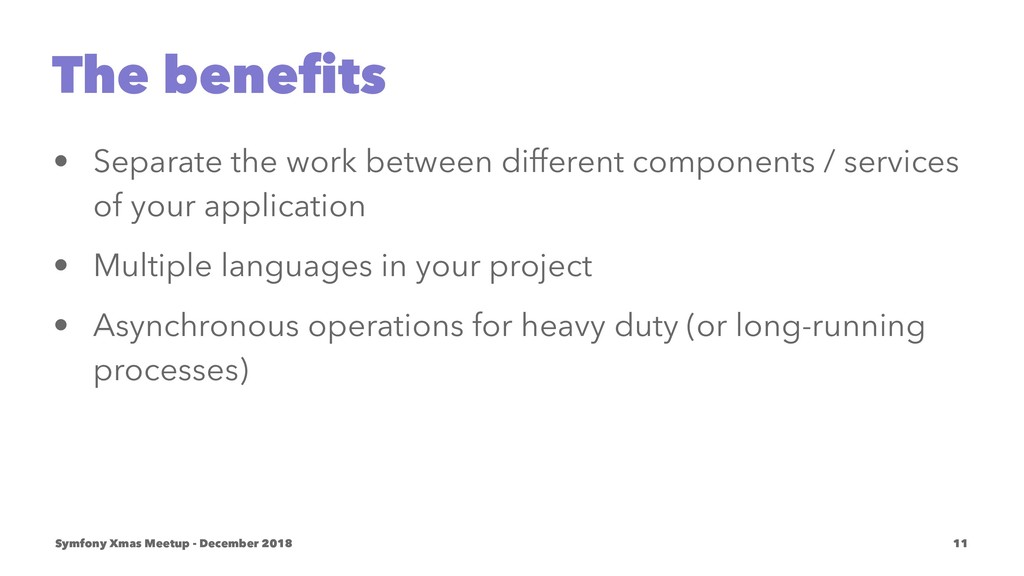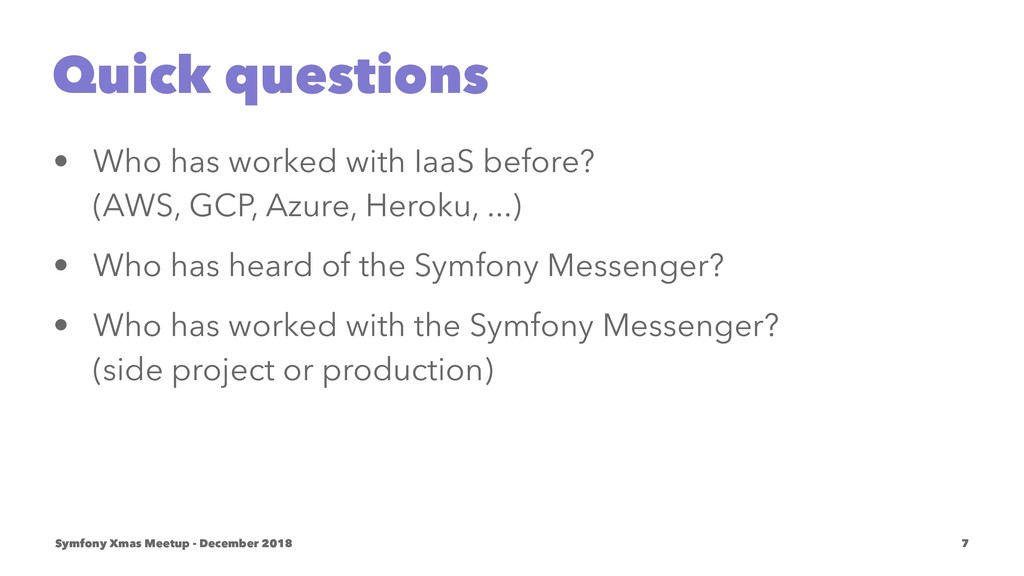 I will show you through examples how you can use the Symfony Messenger to integrate your Symfony application with message queues, and to interact with cloud services.