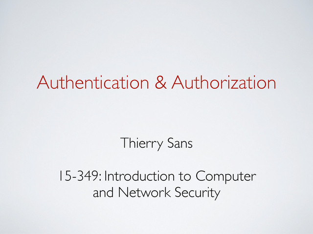 security: buffer overflow and TOCTOU attacks • Malicious Code: Viruses, backdoors and cover channels And let's talk about authorization again • Mandatory Access Control models and information flow