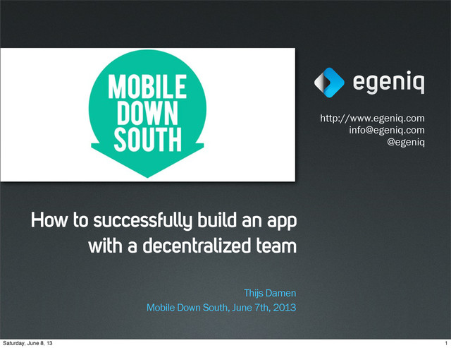 Working remote is something that a lot of developers need to do. May it be permanent, a few days a week or simply visiting clients we need to be able to keep communicating with our team, even if they are offline. How do we share code, divide tasks or have discussions when not everyone is online or available at all times. In this presentation we will see what tools are out there and how they can be used by your team to work together. Even for people that work together in the same room a lot of these tools provide structure and a good starting point on how to develop applications with a team.