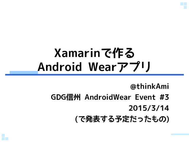 Xamarinで作る Android Wearアプリ @thinkAmi GDG信州 AndroidWear Event #3 2015/3/14 (で発表する予定だったもの)
