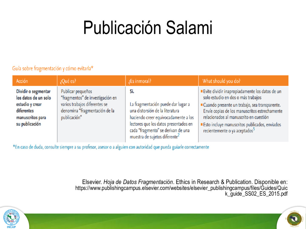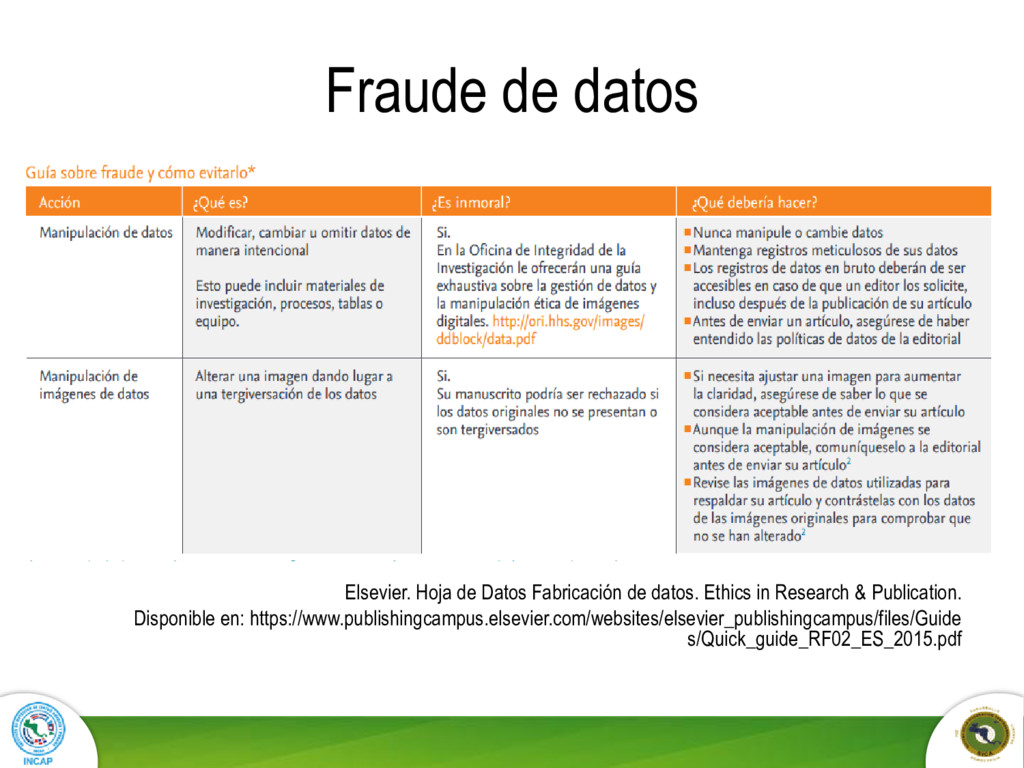 Ethics in Research & Publication. Disponible en: https://www.publishingcampus.elsevier.com/websites/elsevier_publishingcampus/files/Guide s/Quick_guide_RF02_ES_2015.pdf
