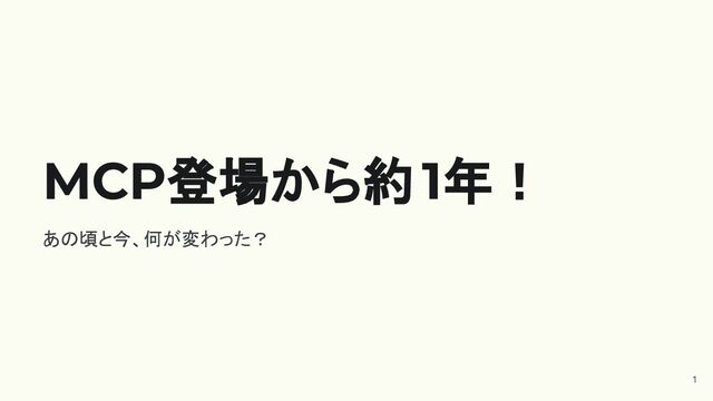 MCP登場から約1年!あの頃と今、何が変わった? / MCP One Year Later