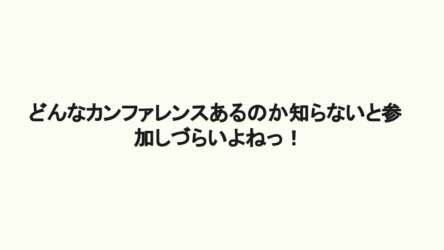 どんなカンファレンスあるのか知らないと参 加しづらいよねっ!