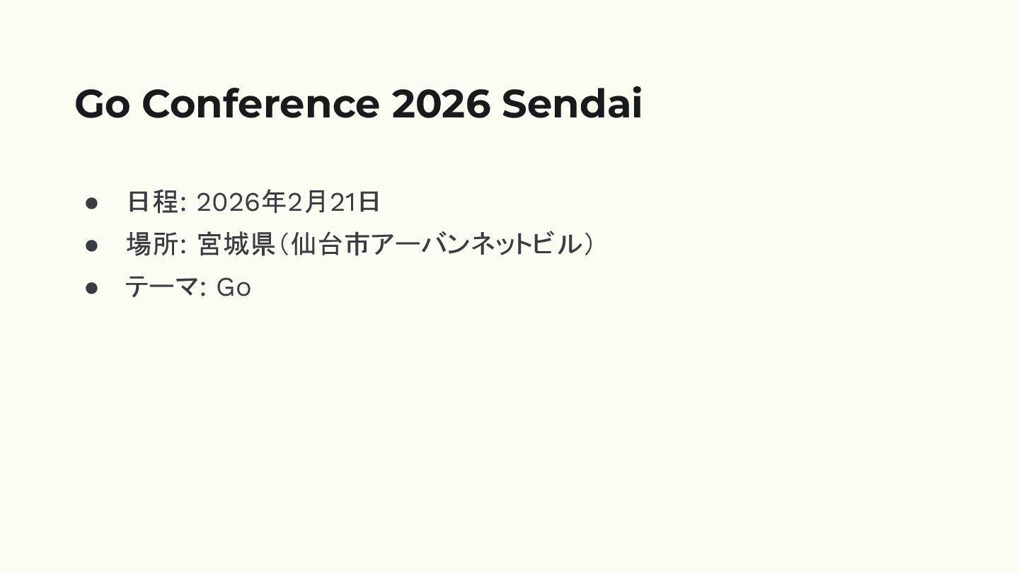 • 日程: 2026年2月21日 • 場所: 宮城県(仙台市アーバンネットビル) • テーマ: Go Go