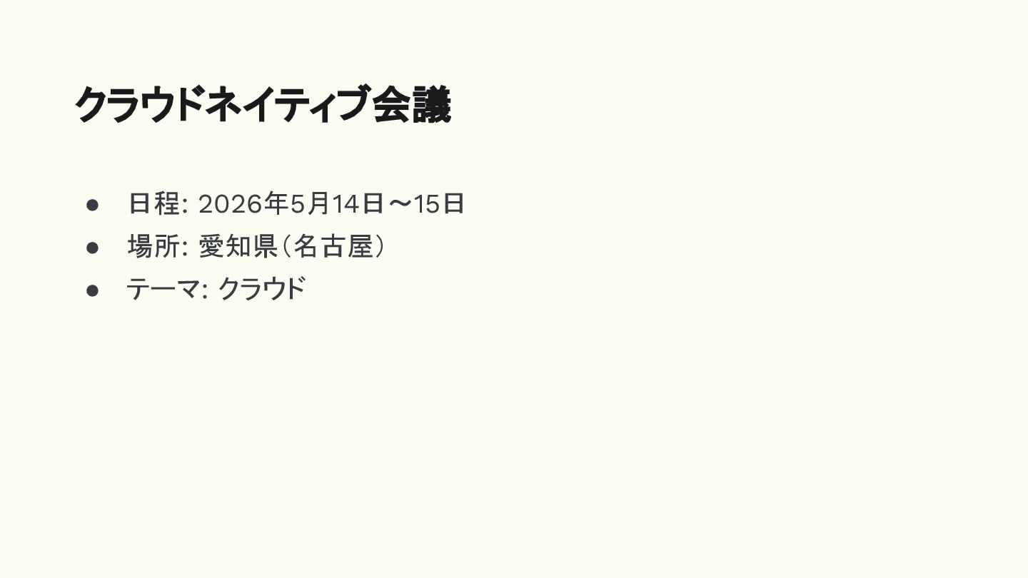 • 日程: 2026年5月14日〜15日 • 場所: 愛知県(名古屋) • テーマ: クラウド クラウドネイティブ会議
