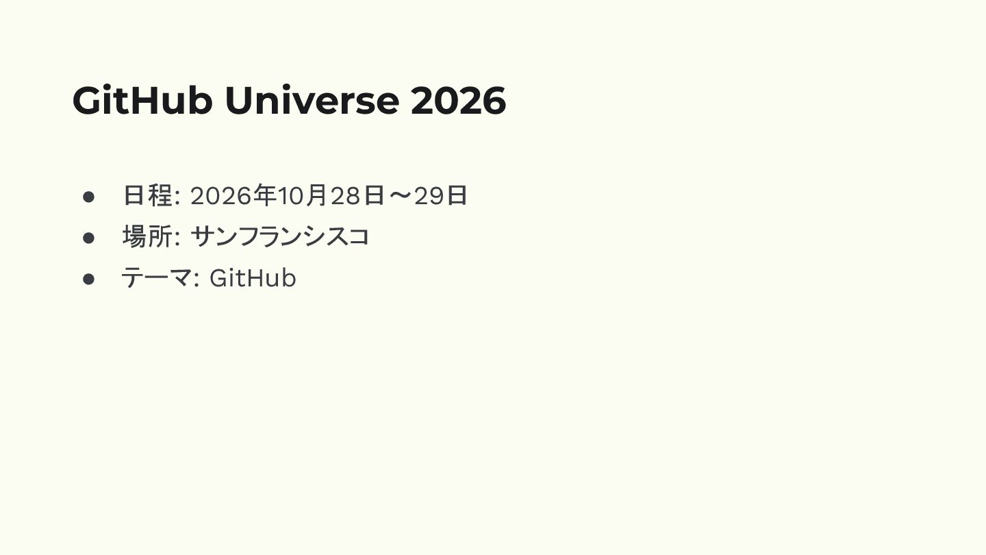 • 日程: 2026年10月28日〜29日 • 場所: サンフランシスコ • テーマ: GitHub GitHub