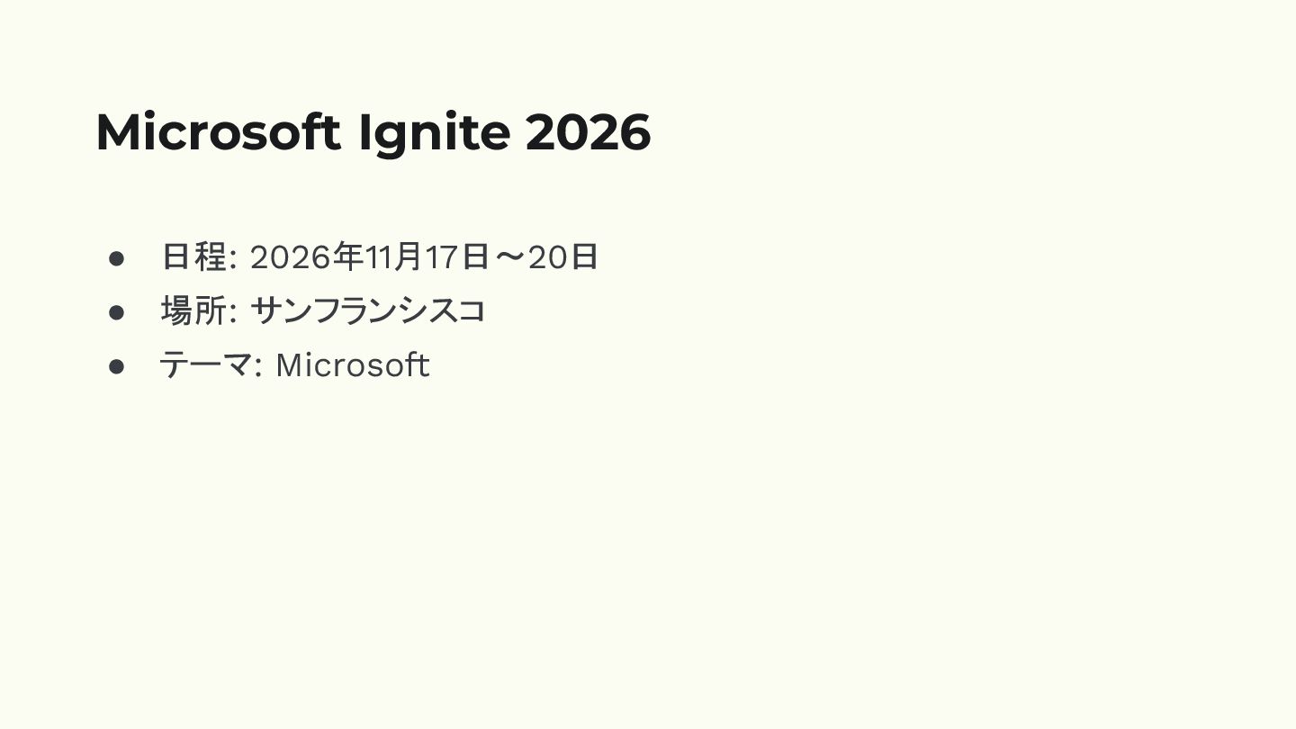 • 日程: 2026年11月17日〜20日 • 場所: サンフランシスコ • テーマ: Microsoft Microsoft