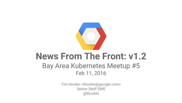 • ...without making overly-brittle container images 12-factor says config comes from the environment • Kubernetes is the environment Manage config via the Kubernetes API Inject config as a virtual volume into your Pods • late-binding, live-updated (atomic) • also available as env vars Status: GA in Kubernetes v1.2 node API Pod Config Map