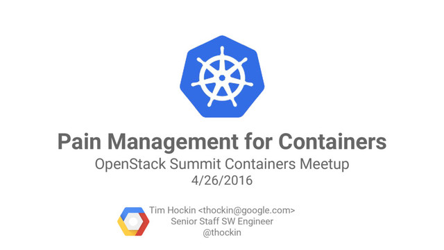 to kubernetes • Create services, replication controllers, etc. exactly as usual Nodes and PersistentVolumes are labelled with their availability zone • Fully automatic for GKE, GCE, AWS • Manual for on-premise and other cloud providers (for now) Status: GA in Kubernetes v1.2 User Zone A Zone C Zone B Master Multi-Zone Clusters