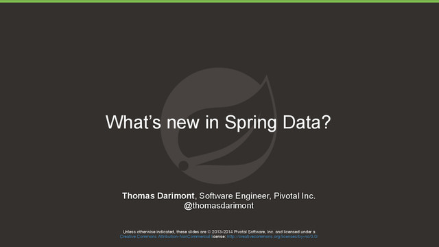 We'll then delve into the latest and greatest features of individual store modules, like JPA, MongoDB, Neo4j, Solr and the community ones as well.