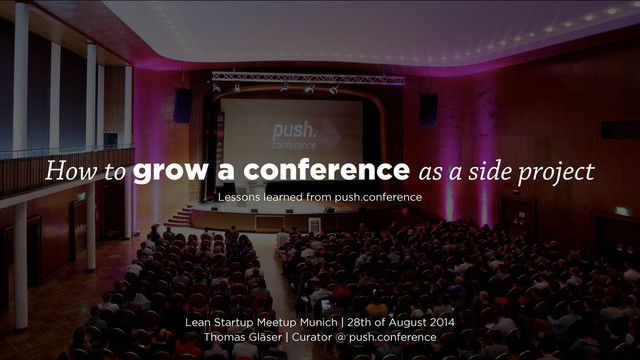Established in 2012 only, push.conference has become one of the most inspiring events in Munich. Connecting creative coders, ux professionals and designers, the event has gained astonishing traction already. This talk will share the story of how we got from idea to this year's large scale event.