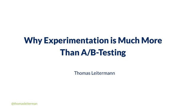 In this talk I explain why I believe that experimentation is much more than A/B-testing.