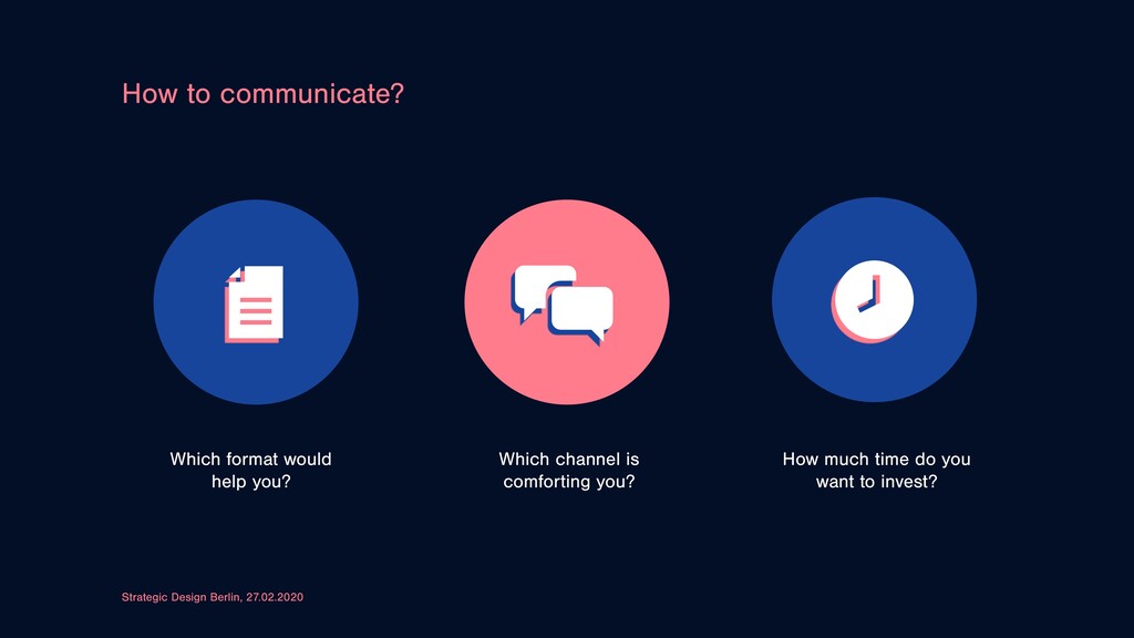 & Fears (ca. 10 min) 2. What means strategic design for you? (ca. 15 min) 3. What are the topics you are interested in? (ca. 30 min) 4. How to communicate? (ca. 15 min)
