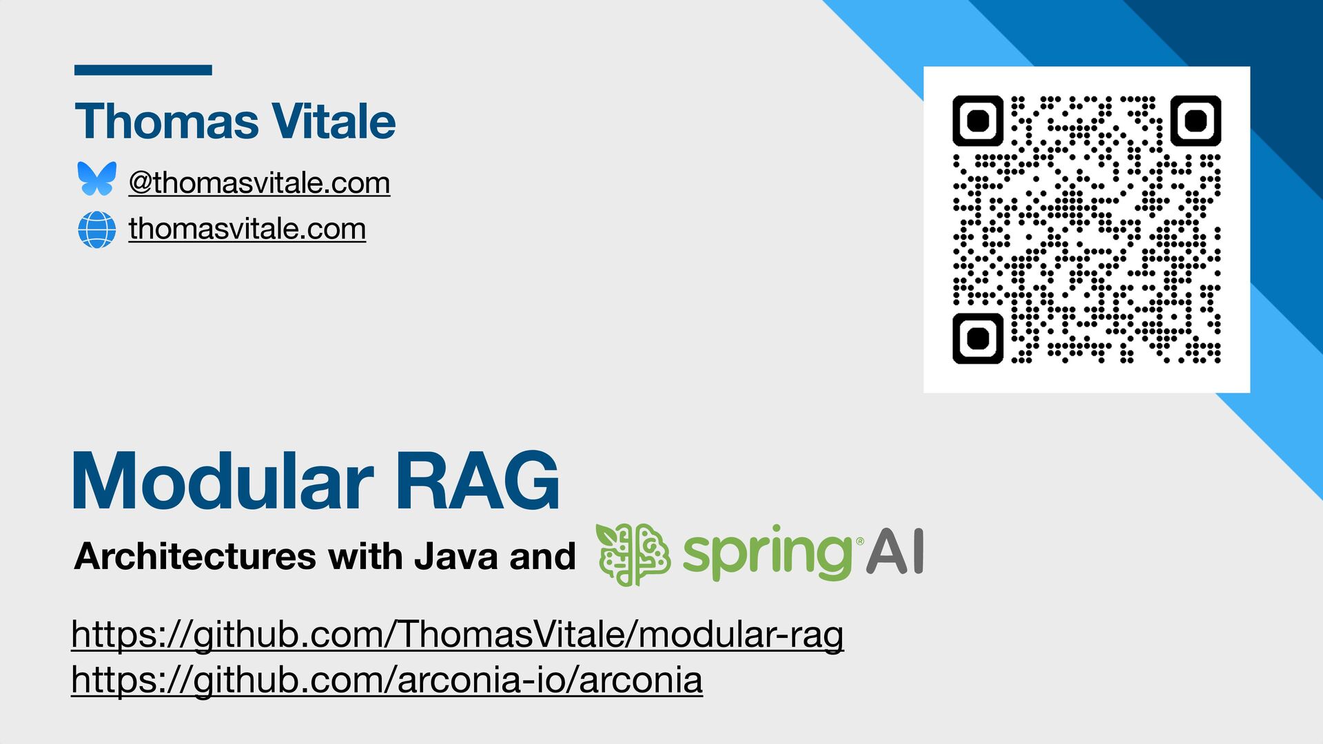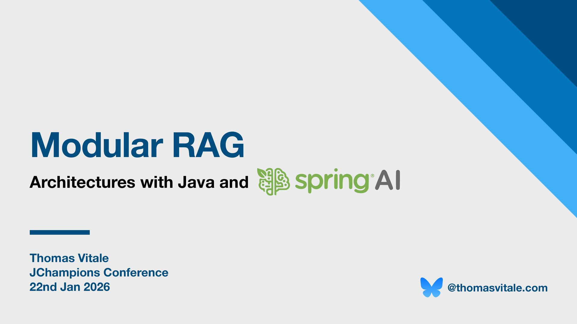 Retrieval-Augmented Generation (RAG) is a foundational approach to enhancing LLMs by integrating them with targeted, domain-specific data. This session will provide a hands-on guide to designing and implementing modular RAG architectures using Java and Spring AI. Through practical examples, you will gain insights into building production-ready RAG workflows that support both current and future use cases.