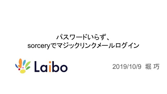 パスワードいらず、 sorceryでマジックリンクメールログイン 2019/10/9 堀 巧