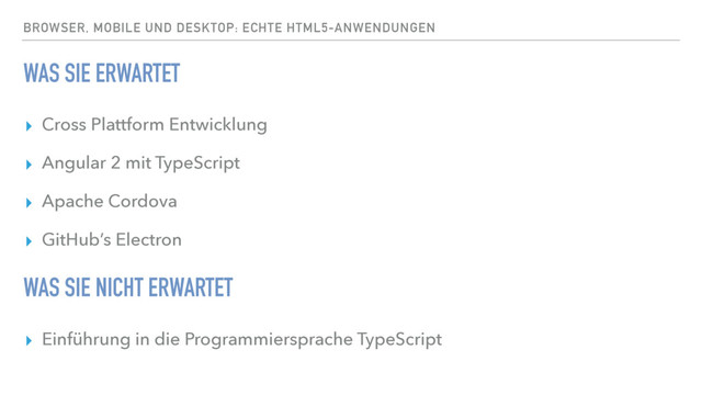 HTML5 kombiniert mit dem Wort „Anwendung“, geht denn das? Na klar! Und der Vorteil dabei: Einmal erstellt, läuft es auf drei Desktopplattformen, mehreren mobilen Plattformen - und im Browser sowieso. Auch der Weg in sämtliche App Stores wie zum Beispiel den Windows Store ist daher kein Problem. Wie das geht? Mit nativen Host-Anwendungen und Frameworks wie Cordova, Electron und den Standard-Browsern. In dieser Session zeigt Ihnen Thorsten Hans von der Thinktecture AG wie einfach es ist, aus einer HTML5 Single Page Application mit Angular 2 eine "echte" Anwendung für eine Vielzahl von heute üblichen Plattformen zu erstellen. Und das alles mit nur einer Codebasis. Uuund Action!