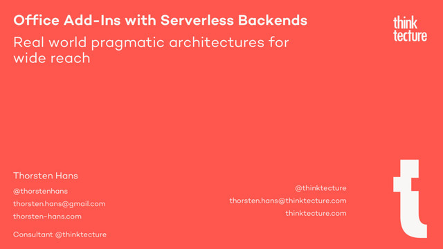 • Why you should care • Developer Tooling • Angular • Serverless Backends • Azure Functions • Tips from real world implementations we did What not to expect • Angular Introduction • Office Add-Ins API Deep Dive • UX / UI Best Practices